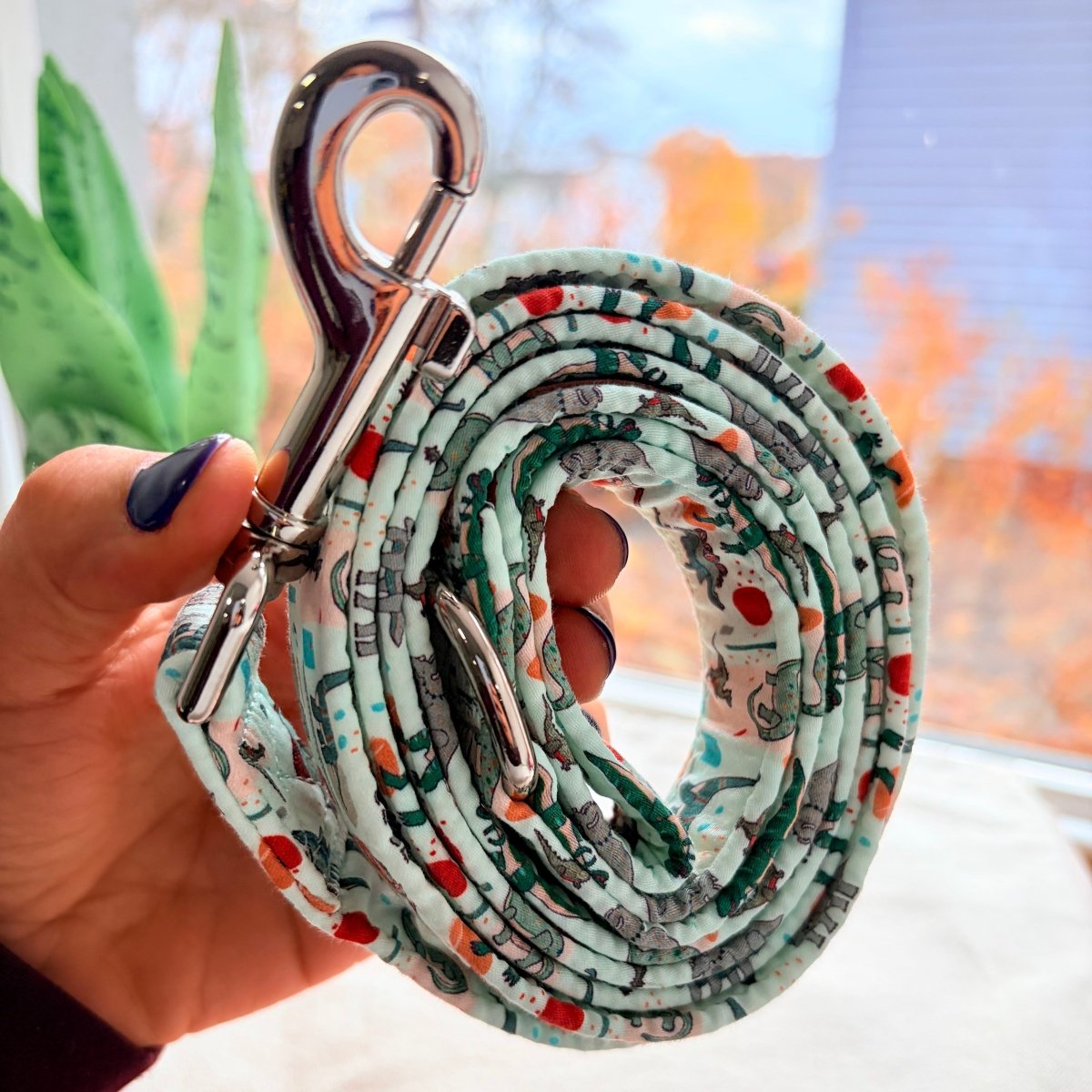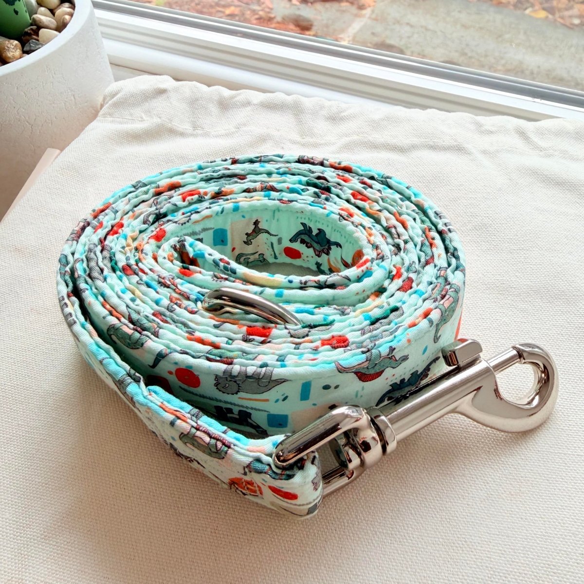 Mint Snappy Dino Joyline™ Leash – 100 % Cotton Shell