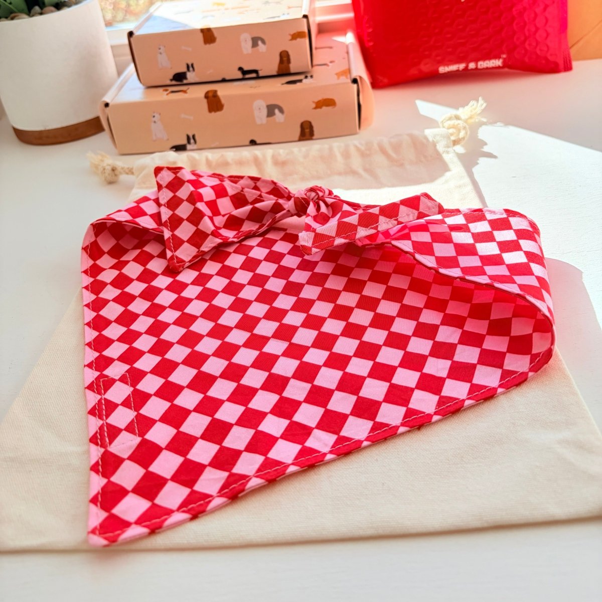 Checker Pink Flairtie™ Bandana – 100% Cotton