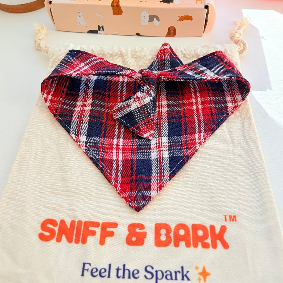 Crimson Navy Plaid Flairtie™ Bandana – 100% Cotton