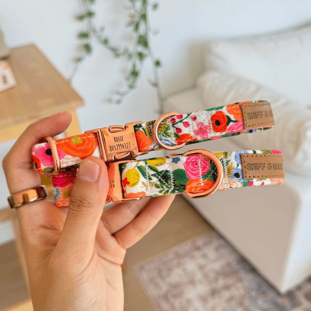 Collar + Leash: Since our collars and leashes have metal on them, machine wash is not recommended. For best result - spot clean with water and soap. Air dry.