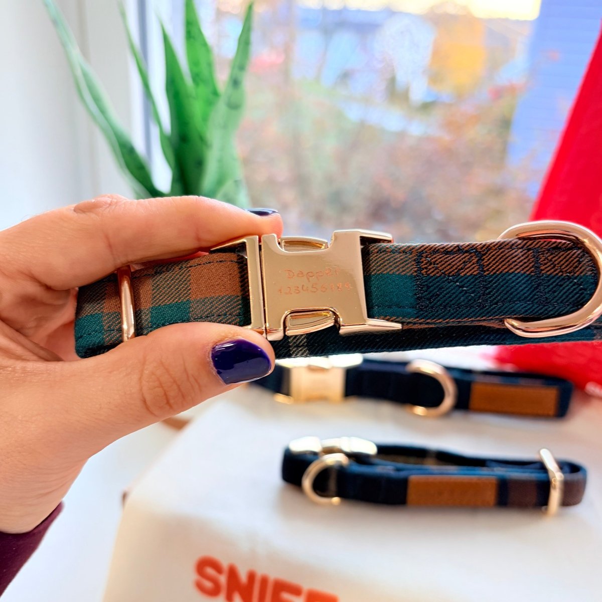 Collar + Leash: Since our collars and leashes have metal on them, machine wash is not recommended. For best result - spot clean with water and soap. Air dry.
