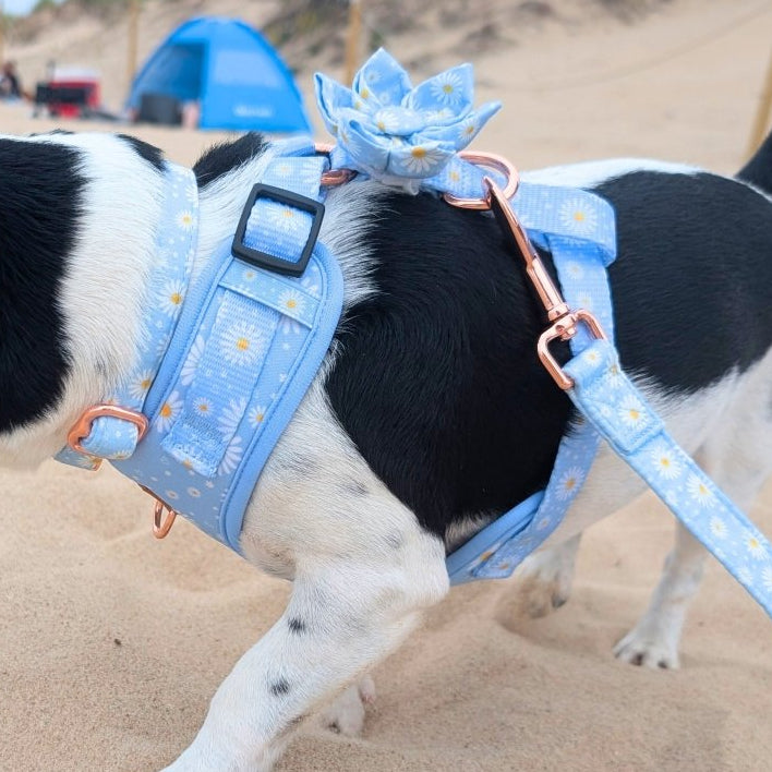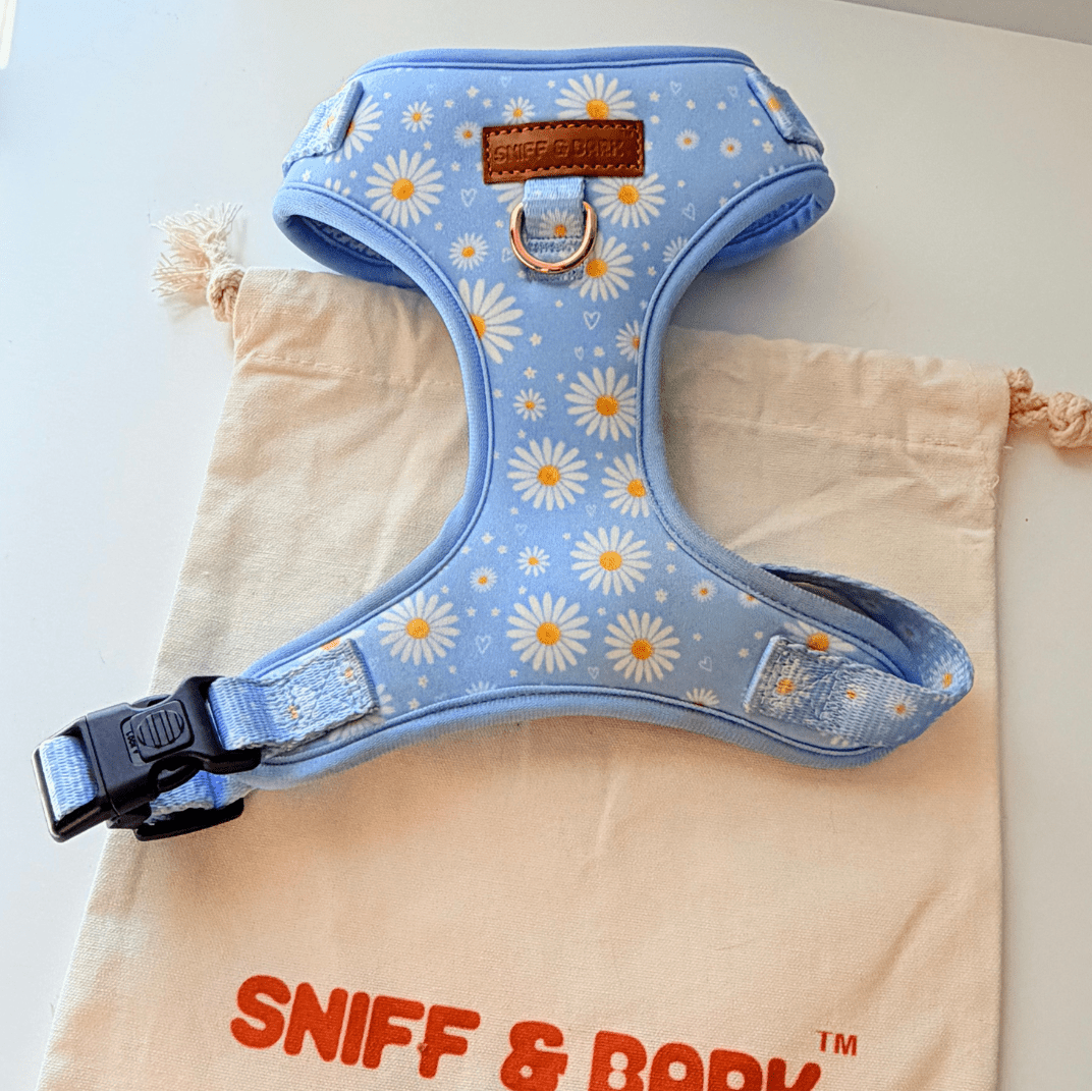 Harness, Bandana, Poop Bag Holder: Machine wash cold on delicate cycle or hand wash. Air dry.