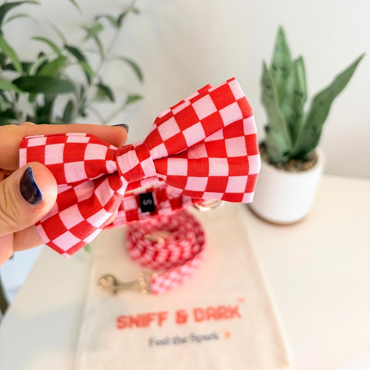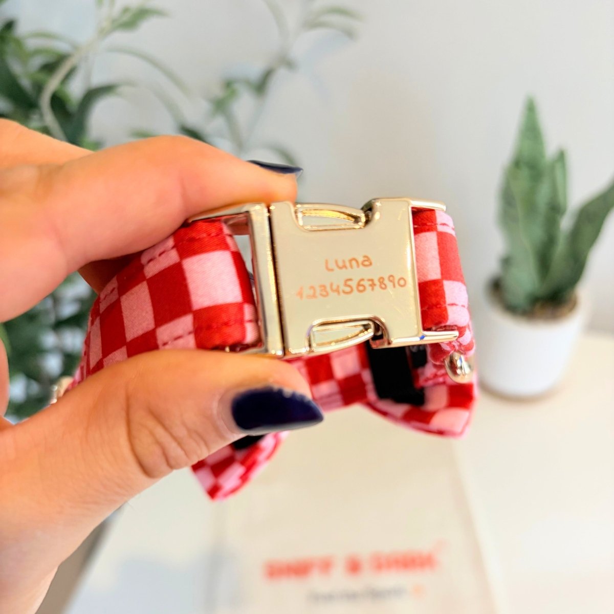 Collar + Leash: Since our collars and leashes have metal on them, machine wash is not recommended. For best result - spot clean with water and soap. Air dry.