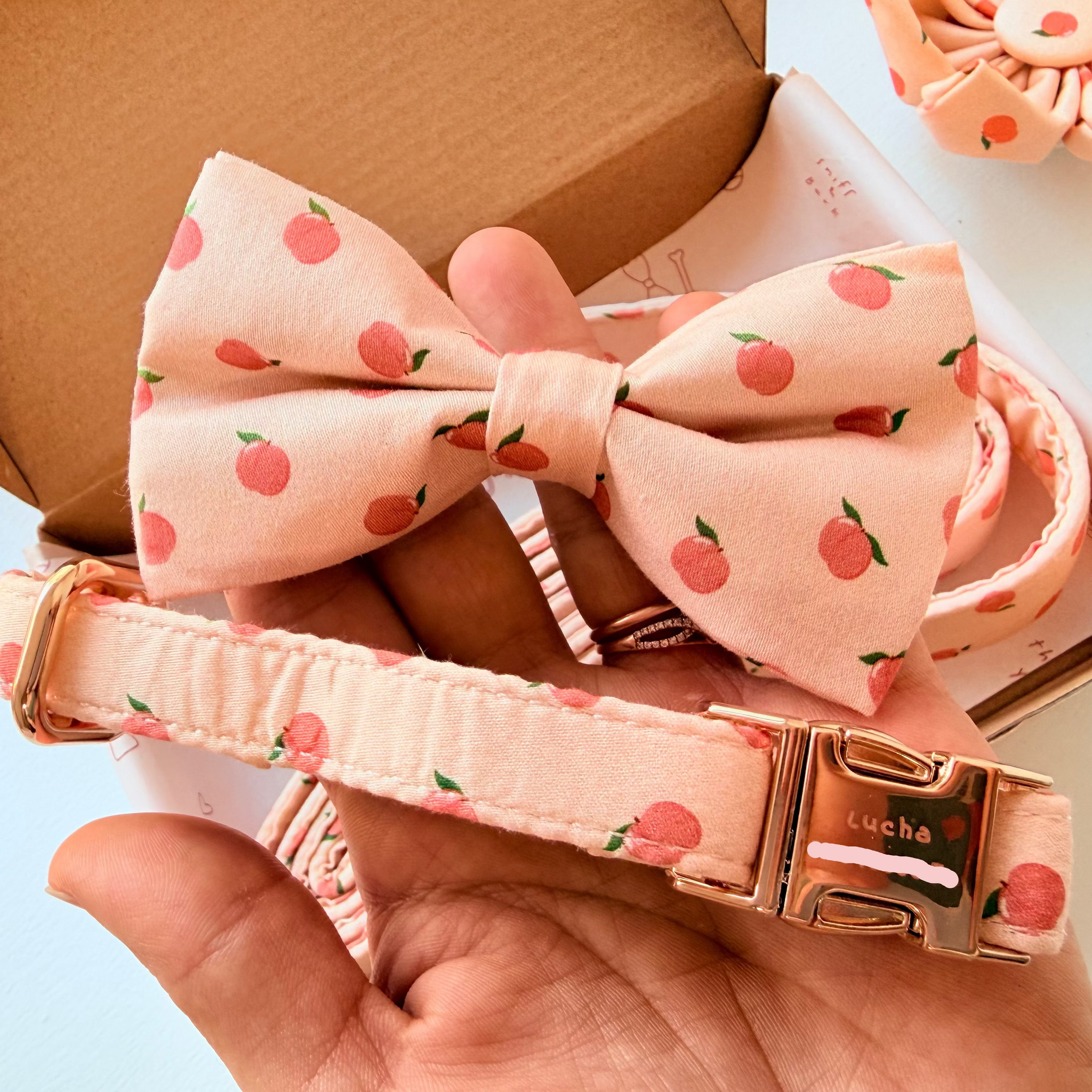 Bow + Flower: To prevent the bow ties and flowers from losing their shape, we do not recommend machine wash. Instead, spot clean with water and soap. Air dry.