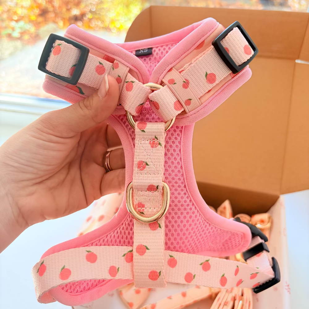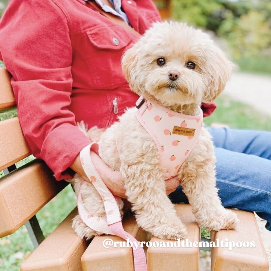 Harness, Bandana, Poop Bag Holder: Machine wash cold on delicate cycle or hand wash. Air dry.