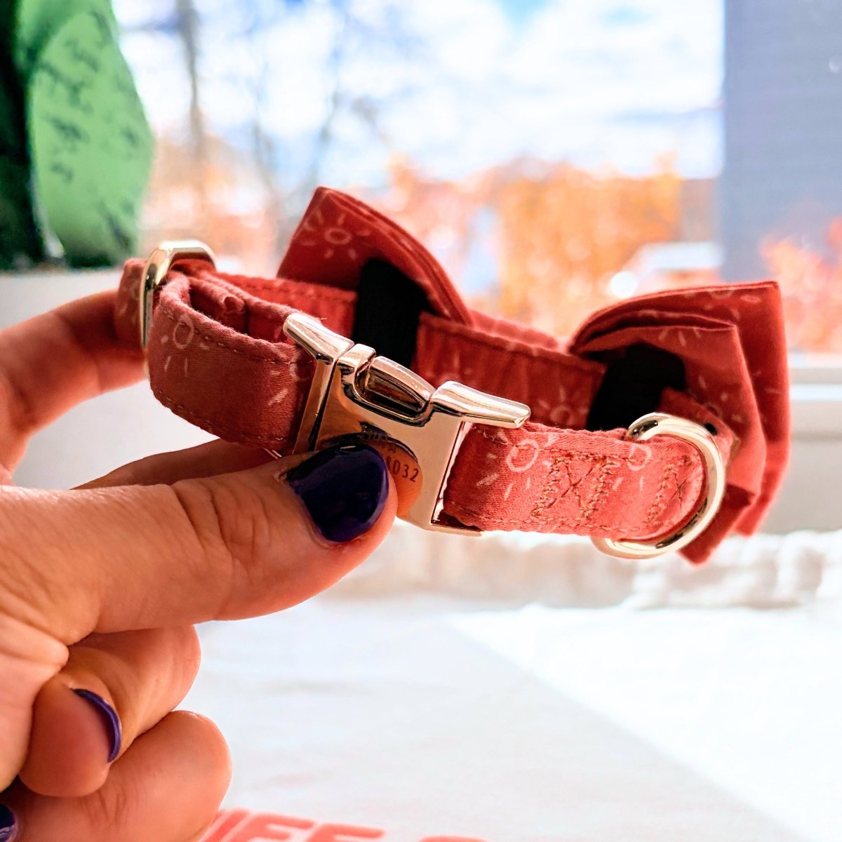 Collar + Leash: Since our collars and leashes have metal on them, machine wash is not recommended. For best result - spot clean with water and soap. Air dry.
