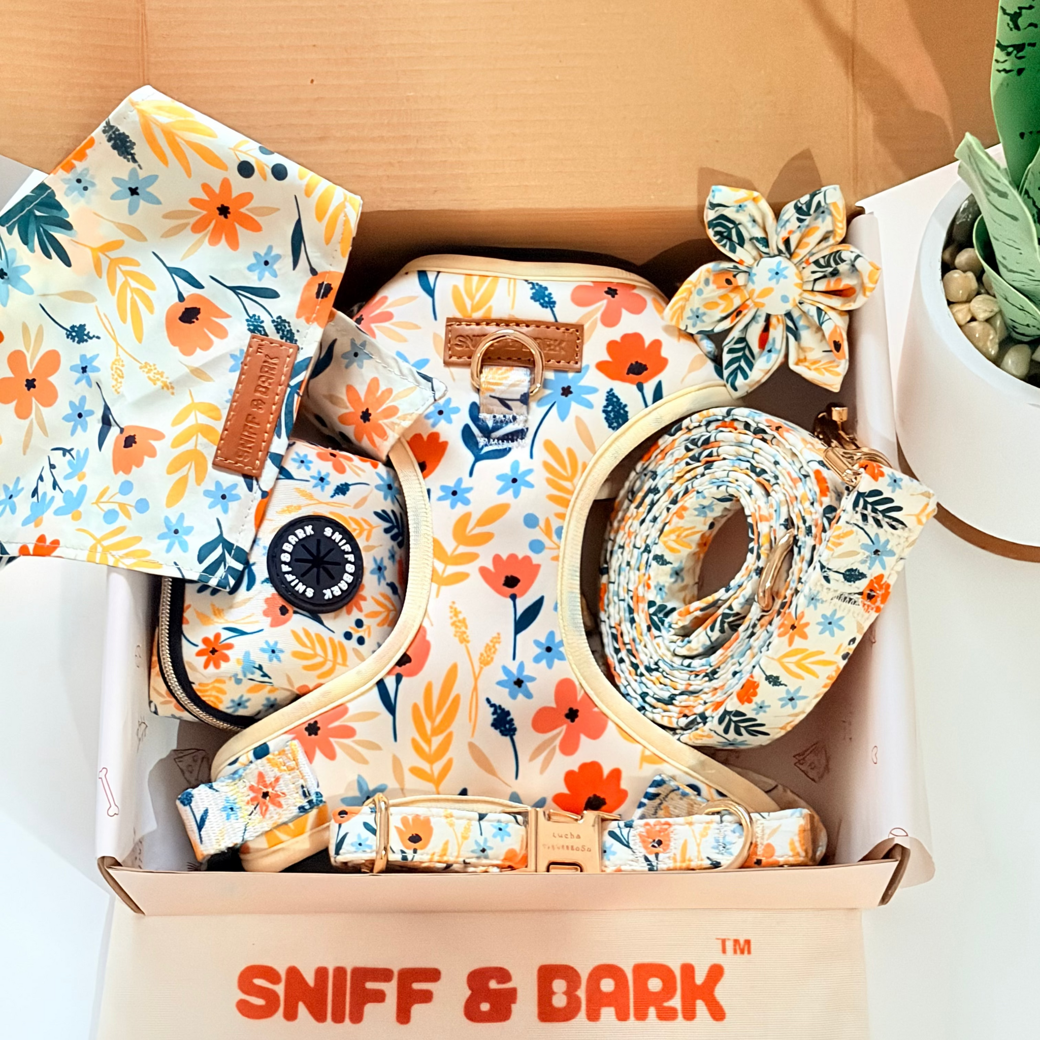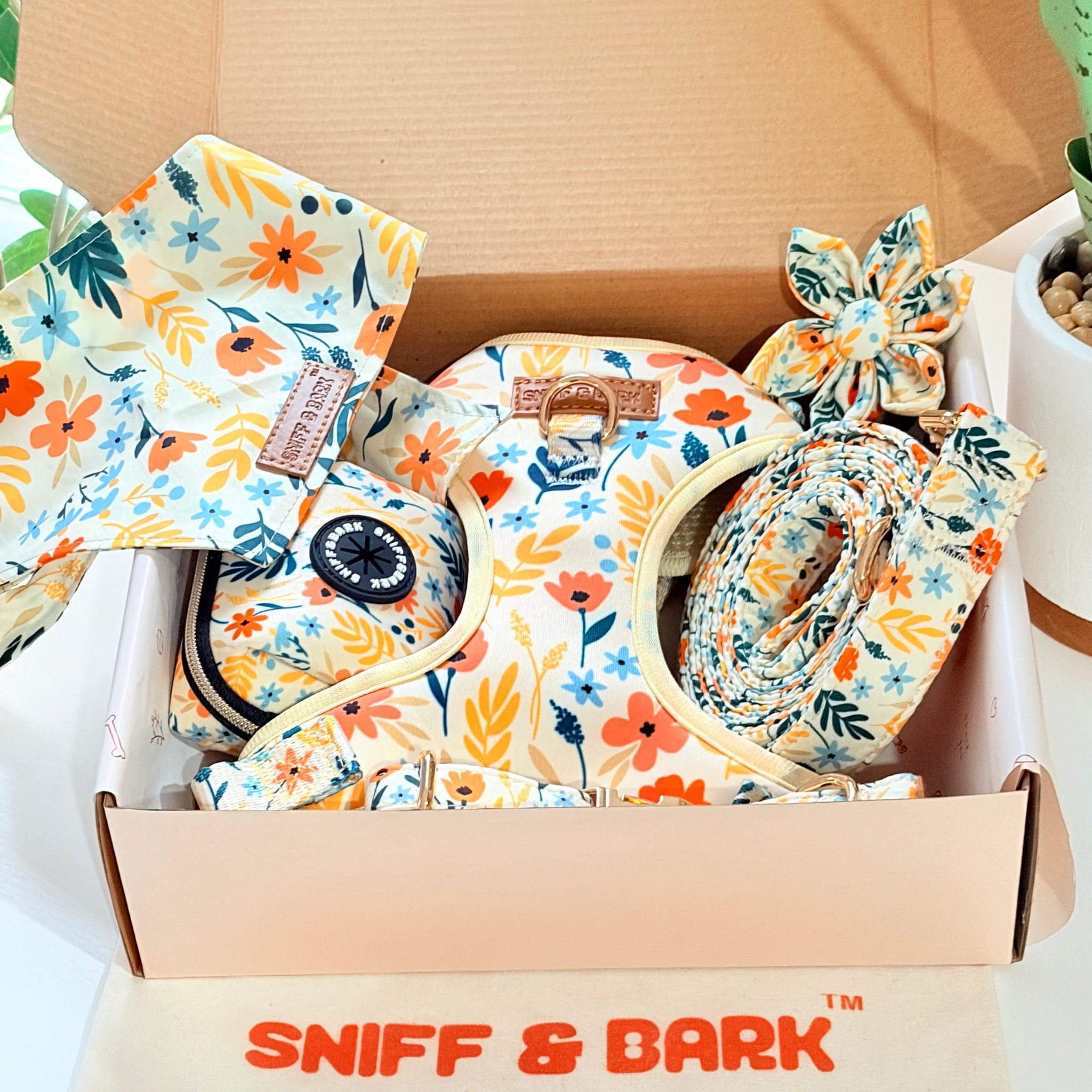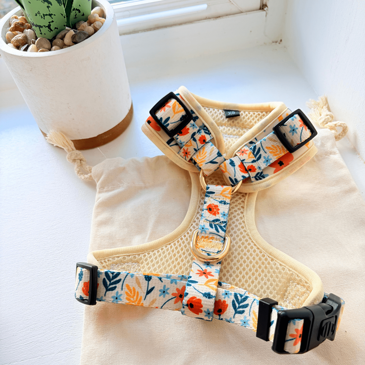 Harness, Bandana, Poop Bag Holder: Machine wash cold on delicate cycle or hand wash. Air dry.
